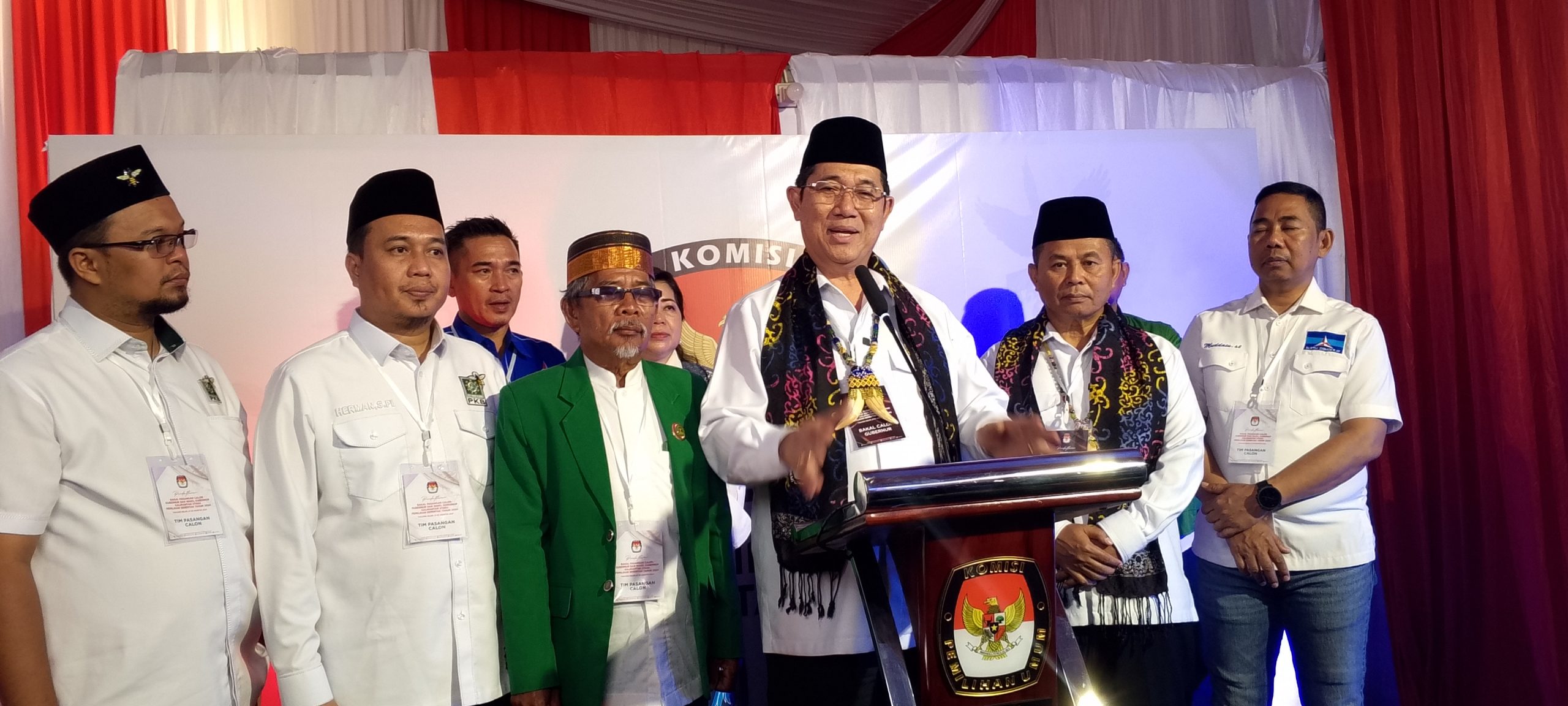 Yansen TP – Suratno diusung partai Demokrat, PKB dan PPP, Yansen TP l, datang ke kantor KPU mengenakan kemeja putih, disambut Ketua KPU Kaltara Hariyadi Hamid bersama komisioner penyelenggara lainnya.