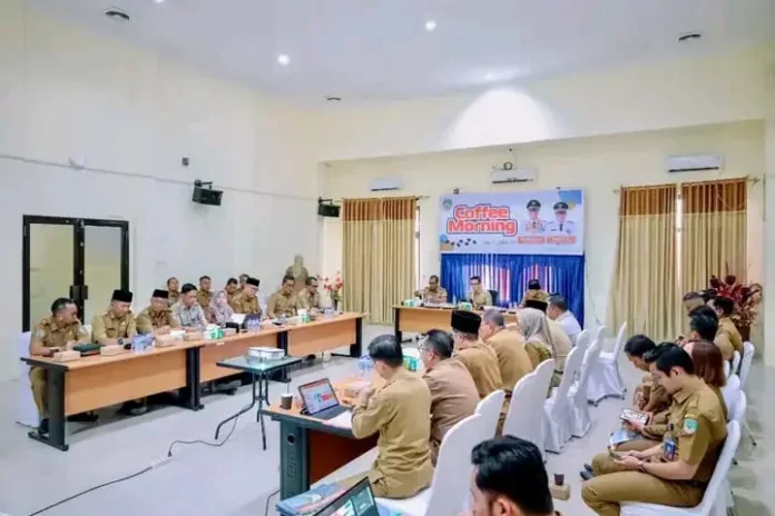 Tana Tidung – Evaluasi kinerja dan penggunaan anggaran menjadi agenda utama Coffee Morning Pemerintah Kabupaten Tana Tidung di ruang rapat Wakil Bupati,Pertemuan ini dipimpin langsung oleh Bupati Ibrahim Ali bersama Sekretaris Daerah Hersonsyah dan Asisten Pemerintahan dan Kesra Idham Nur dan diikuti seluruh kepala Organisasi Perangkat Daerah (OPD).