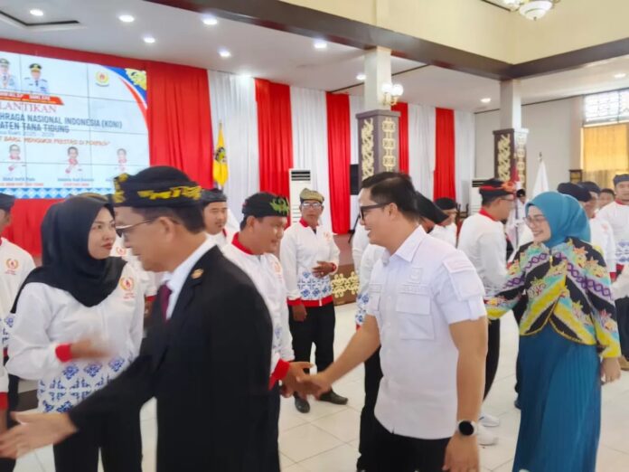 Kaltaraterkini.co.id, KABUPATEN TANA TIDUNG – Bupati Tana Tidung, Ibrahim Ali, hadiri pelantikan pengurus Komite Olahraga Nasional Indonesia (KONI) Kabupaten Tana Tidung periode 2025–2029 di Pendopo Djaparuddin, Tideng Pale.